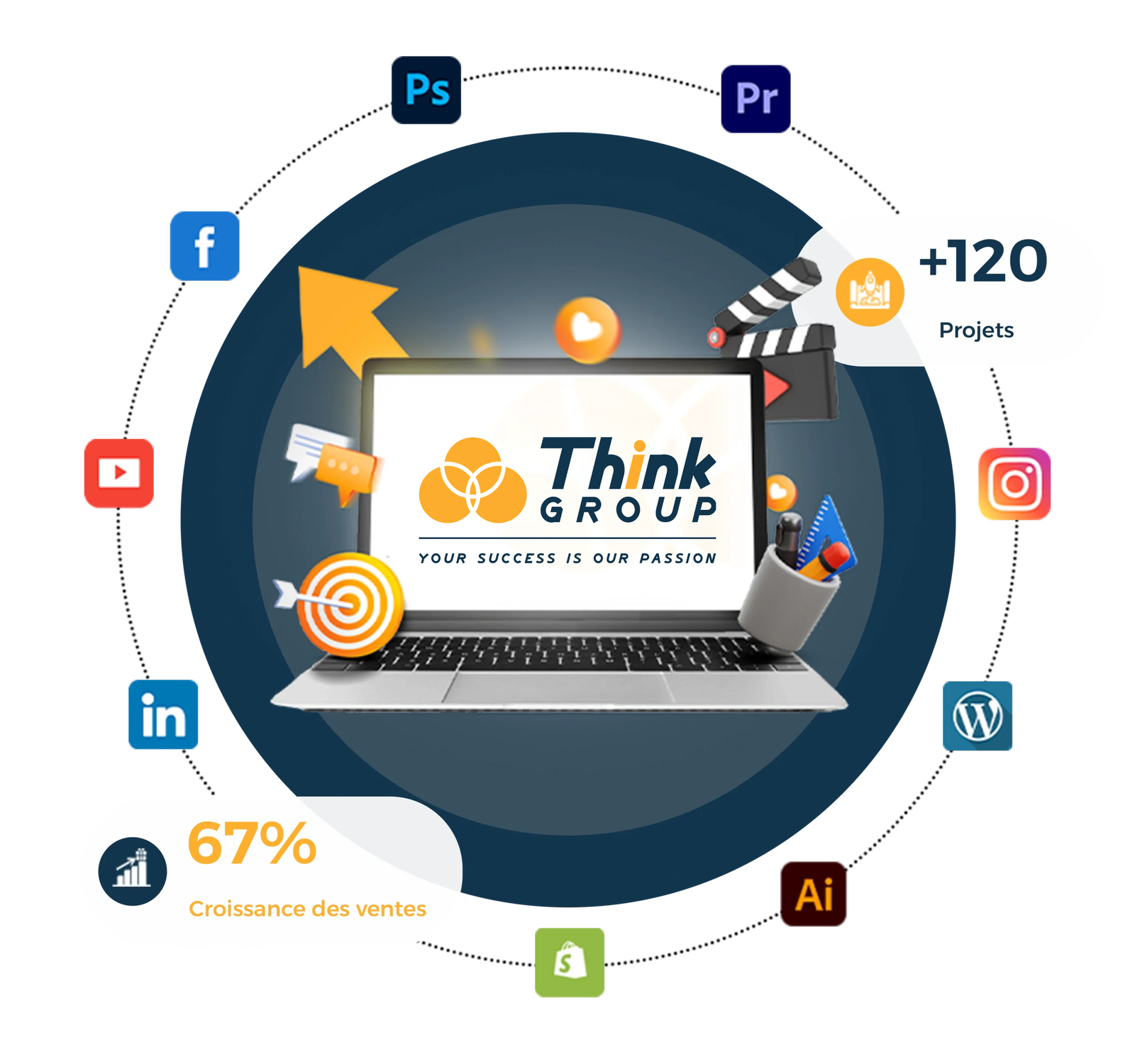 Think Group vous accompagne avec créativité et expertise, de la conception graphique à la gestion des réseaux sociaux, en passant par le développement web et la production vidéo.
